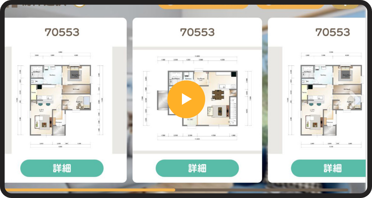 - 工務店のアンケートに答えなくても、アプリに最初からセットされているサンプルプランでシミュレーション可能です。また、お知らせページからサンプルプランも配信しますので、公式の X、Instagram、Facebook をぜひフォローしてください!